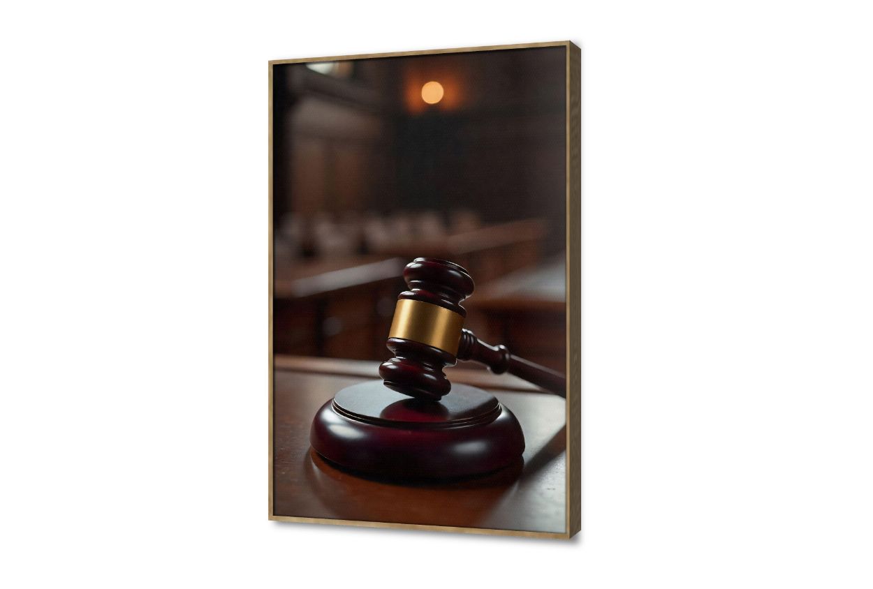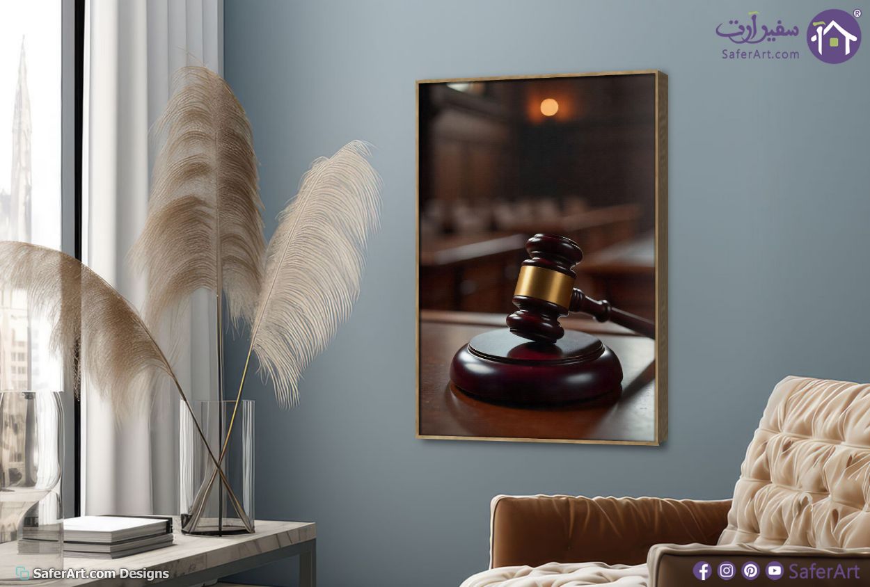 يمثل هذا التصميم مشهدا مهيبا لمطرقة القاضي الخشبية في قاعة المحكمة حيث تبرز التفاصيل الدقيقة للخشب واللمعان الذهبي الذي يعكس هيبة القانون بوضوح تام ضمن تابلوه حائط مميز يعتمد اسلوب التصوير الفوتوغرافي الواقعي مع خلفية ضبابية تمنح العمل عمقا فنيا رائعا يجمع بين القوة والهدوء النفسي والاتزان المطلوب في الديكورات الرسمية والمكاتب الفخمة, متوفر بمقاسات متعددة يمكنك اختيار او تغيير المقاس عند الطلب ,بتصميم مميز لـ تابلوهات مودرن, تابلوهات مودرن , لوحات فنية مودرن اعمال و شركات, قانون - قضاء - محاماه , التابلوه يغلب عليه الالوان اسود, الوان داكنة, بنى - بيج, فضى – ذهبى , و مصمم بالشكل التالى 1 قطعه , بالطول, ببرواز, برواز خشبى, مستطيل , مناسب لديكور حوائط مدخل المنزل, مكاتب – شركات - اعمال , و هو يتميز بالسمات التالية : بسيط و هادئ, صور فوتوغرافية, لوحات فنية, مودرن , متوفر الان فى مصر و يأتى جاهز للتركيب مع دليل التركيب و اكسسوارات التركيب اللازمه