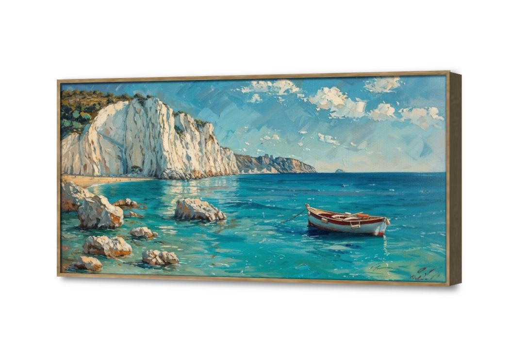 الطبيعة الساحرة في أحدث تابلوهات سفيرآرت قارب في مياه البحر الأبيض المتوسط بمياهه الزرقاء الصافية وعلى الشاطئ تظهر مجموعة صخور مكسوة بالعشب الخضراء., متوفر بمقاسات متعددة يمكنك اختيار او تغيير المقاس عند الطلب ,بتصميم مميز لـ تابلوهات مودرن, تابلوهات مودرن , لوحات فنية مودرن بحار و شواطئ و مراكب, قوارب و مراكب , التابلوه يغلب عليه الالوان ابيض - اوف وايت, ازرق - تركواز , و مصمم بالشكل التالى 1 قطعه , بالعرض, ببرواز, برواز خشبى, مستطيل , مناسب لديكور حوائط غرفة الاستقبال, غرفة المعيشة, مكاتب – شركات - اعمال , و هو يتميز بالسمات التالية : الوان زيتية - اكريليك, دول البحر المتوسط, لوحات فنية, مودرن , متوفر الان فى مصر و يأتى جاهز للتركيب مع دليل التركيب و اكسسوارات التركيب اللازمه