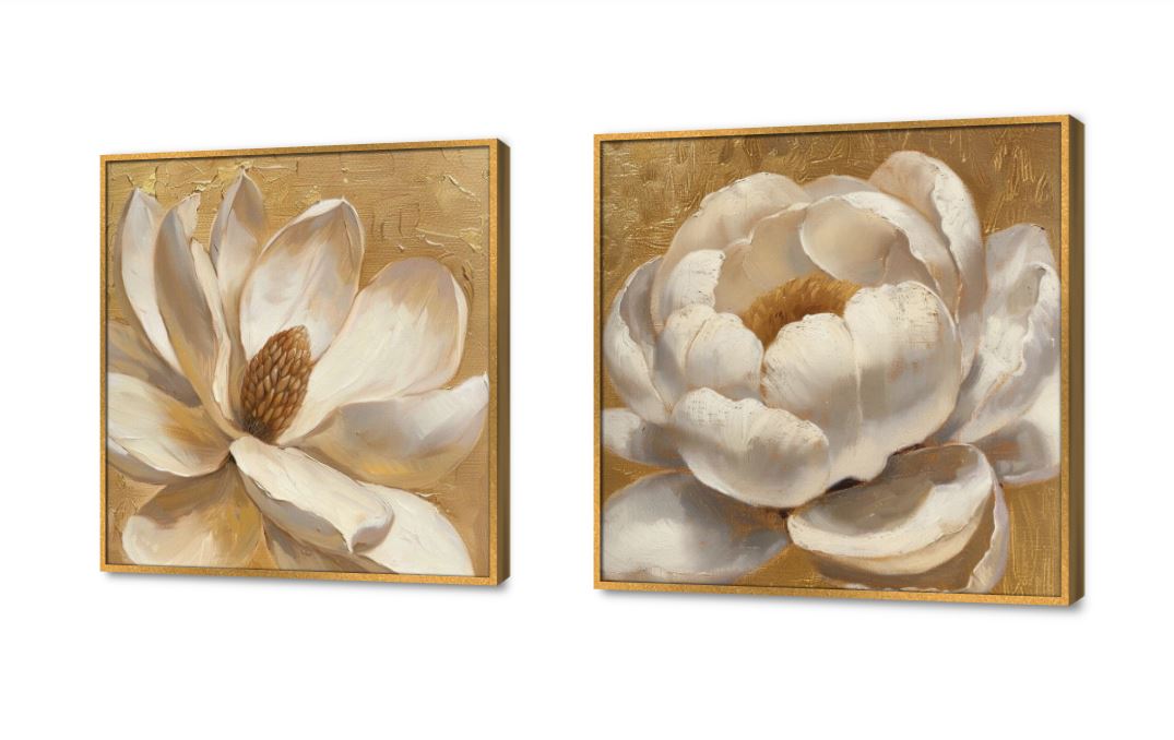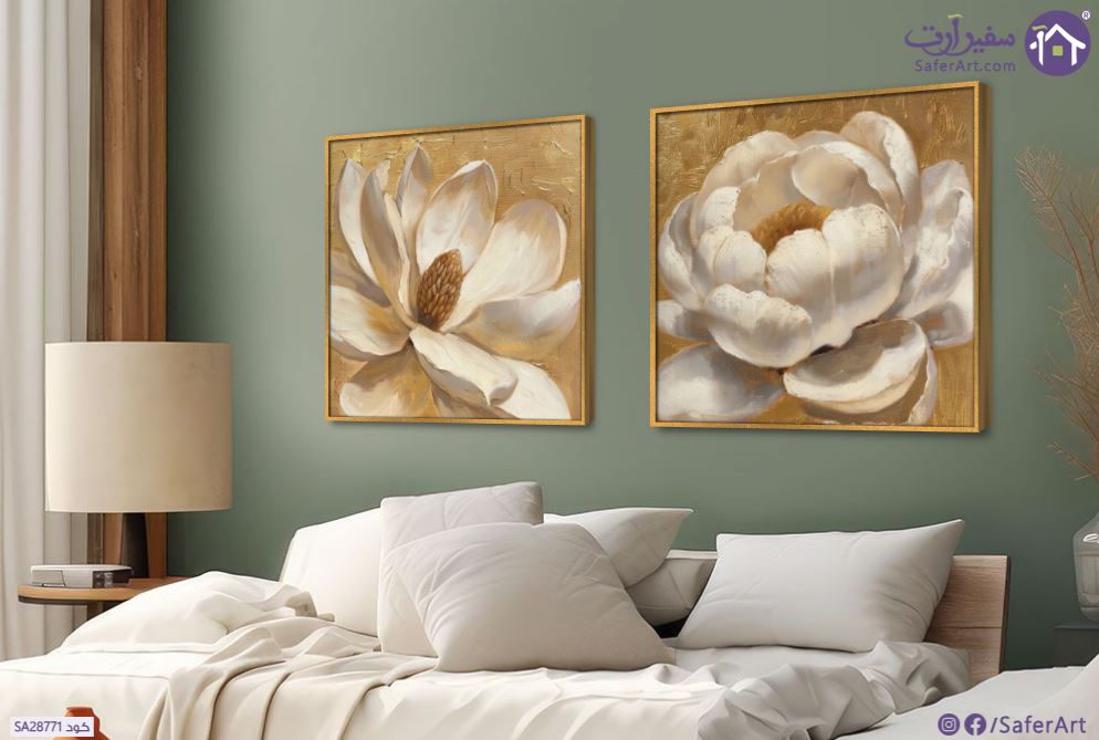 تابلوه مودرن من قطعتين لزهرة ونبات الفل باللون الأبيض على خلفية باللون الذهبي في تصميم أنيق وجذذاب, متوفر بمقاسات متعددة يمكنك اختيار او تغيير المقاس عند الطلب ,بتصميم مميز لـ تابلوهات مودرن, تابلوهات مودرن , لوحات فنية مودرن ورود - زهور - نباتات , التابلوه يغلب عليه الالوان ابيض - اوف وايت, فضى – ذهبى , و مصمم بالشكل التالى 2 قطعه, متعدد القطع ( اى عدد ) , بالعرض, ببرواز, برواز ذهبى, مستطيل , مناسب لديكور حوائط غرفة الاستقبال, غرفة المعيشة, غرفة نوم, مدخل المنزل, مكاتب – شركات - اعمال , و هو يتميز بالسمات التالية : الوان زيتية - اكريليك, بسيط و هادئ, لوحات فنية, مودرن , متوفر الان فى مصر و يأتى جاهز للتركيب مع دليل التركيب و اكسسوارات التركيب اللازمه